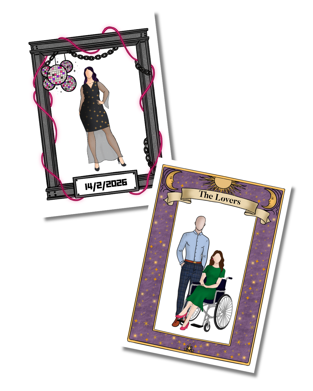 An illustration of you, drawn on a day full of love and celebration, in the outfit you wore, surrounded by the people you love? That goes on a wall. That gets framed. That comes up in conversation years later when someone spots it and asks where it came from